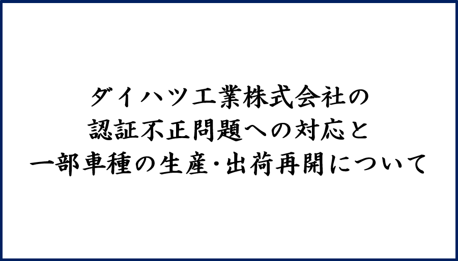 ダイハツ工業株式会社の認証不正問題への対応と一部車種の生産・出荷再開について